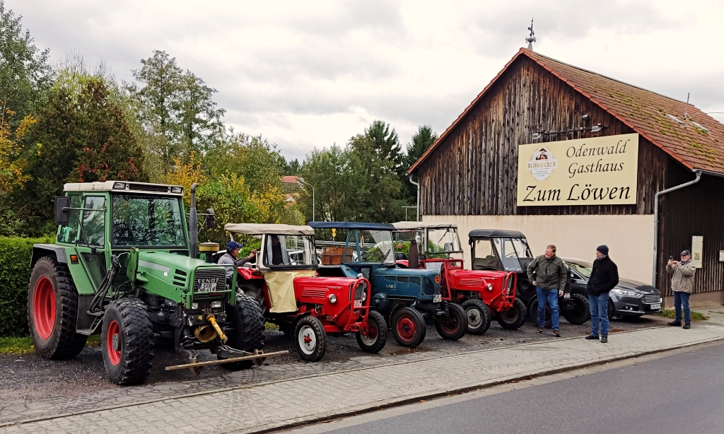 Unsere Traktorfahrer haben es uns am Samstag, den 29. Oktober gut vorgemacht und sind weitestgehend trockenem Wetter und 13 Grad eine Runde um Kirchbrombach gefahren. Ziel war der Gasthof "Zum Löwen" in Langenbrombach. Am Sonntag fahren nun Automobile und Zweiräder bei deutlich feuchterem Wetter. Wir werden auch hiervon Bilder einstellen
