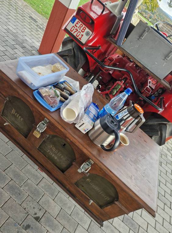Anschließend ging es über Affhöllerbach nach "Wallwisch" und zum Gasthof Odenwald nach Hummetroth. Dort fand der gemeinsame Abschluss statt zu dem sich auch noch Herbert Spross mit seinem Fiat Schlepper hinzu gesellte. Die Ausfahrt dauerte gemütliche 2,5 Szunden und alle Teilnehmer waren begeistert von der Entschleunigung aus dem hektischen Alltag.