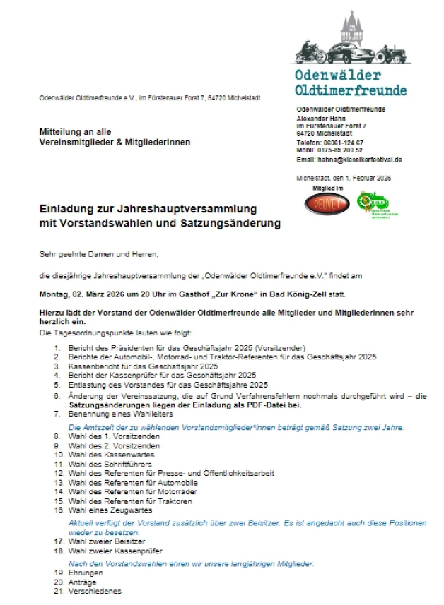 2026 (Karfreitag, entfällt wegen der 30. Osterglockenfahrt der Odw. Oldtimerfreunde e.V.), 10. April